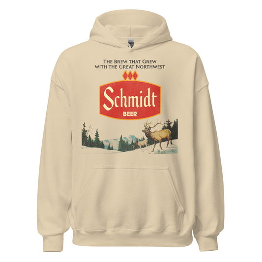 Retro Schmidt Beer Elk Nature Scene Defunct Brewing Hoodie