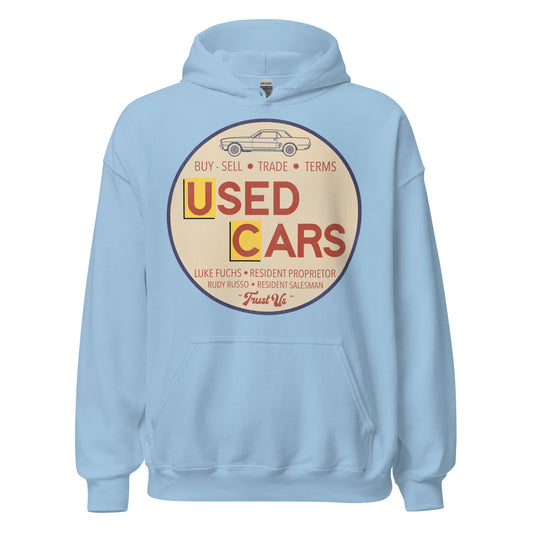Retro 'Used Cars' Movie Car Lot Sign Logo Hoodie
