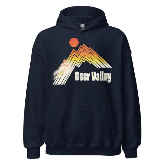 Retro Deer Valley Utah Downhill Skiing Hoodie